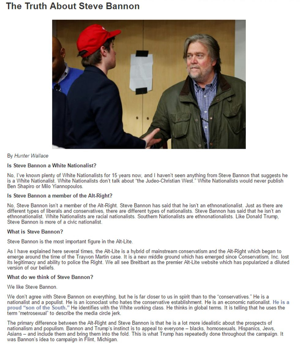 And speaking of Breitbart, the CCC even had a November article calling on white nationalists to "cut the bullshit about Steve Bannon," because -- and gosh, we liberals should beso relieved -- he's not nearly racist enough for the CCC's taste, although they do consider him a useful ally -- not quite "alt-right," but "alt-lite":