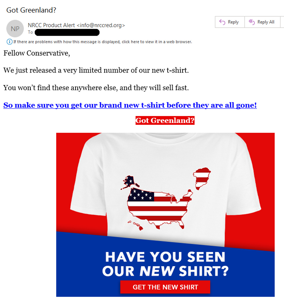 I doubt that any of his followers who bought that T-shirt would be aware that the additional island at the top is Greenland.
