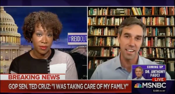 Texans somehow re-elected Cruz when they could have traded him in for Beto O'Rourke. Heidi Cruz probably would've taken that deal if offered it directly. But O'Rourke, now a private citizen, has done more for Texas in a time of crisis than Cruz.