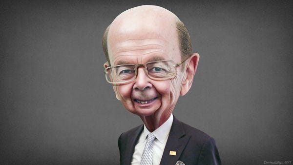 Look at this guy flying under the radar all sneaky-like! All that time Scott Pruitt was out there scamming a cheap apartment and trying to buy a used Trump jizz mattress, and Ol' Man Ross is just scooping up the Benjamins on the DL! Who had Wilbur Ross in the bracket as Griftiest Fucker Not Named Trump? Hats off to you, Sir or Madam!