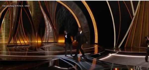 We should be so lucky to be able to consider an incident like this a legitimate scandal. As if we're so incredibly wholesome, as a people, that it's entirely reasonable for us to collectively clutch our pearls over a (kinda deserved) open-handed slap. But in a world where we regularly find out that Hollywood actors are serial rapists or are accused of being cannibals, where many of them belong to a cult known to stalk people and throw them off boats, we have absolutely no business remaining het up about this.