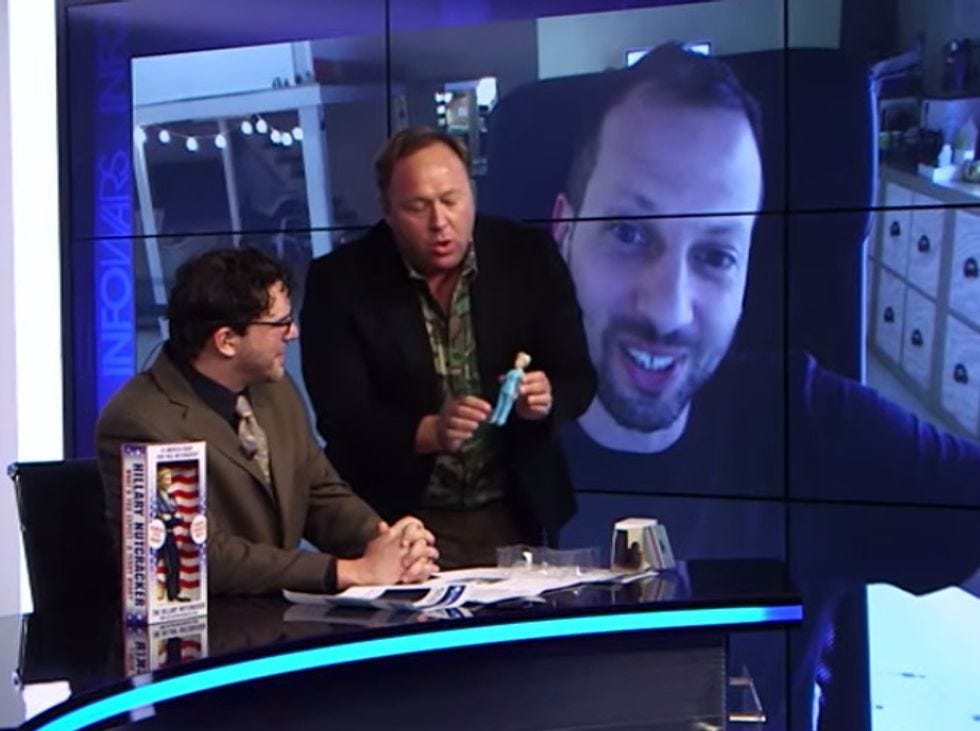 So with another presidential election coming up, he figured that there might be a market for a Hillary Clinton action figure, too. Jason set up a Kickstarter campaign to test the waters, and dutifully did the PR rounds, having an employee contact media outlets that had covered a less flattering product from another company, the " Hillary Clinton nutcracker " (Haw! Get it?), because hey, maybe they'd cover a more positive Hillary novelty item, too. And that's how Jason Feinberg ended up getting booked on some online talk show called "Infowars" that he'd never heard of -- it sounded to him like just another political talk show.