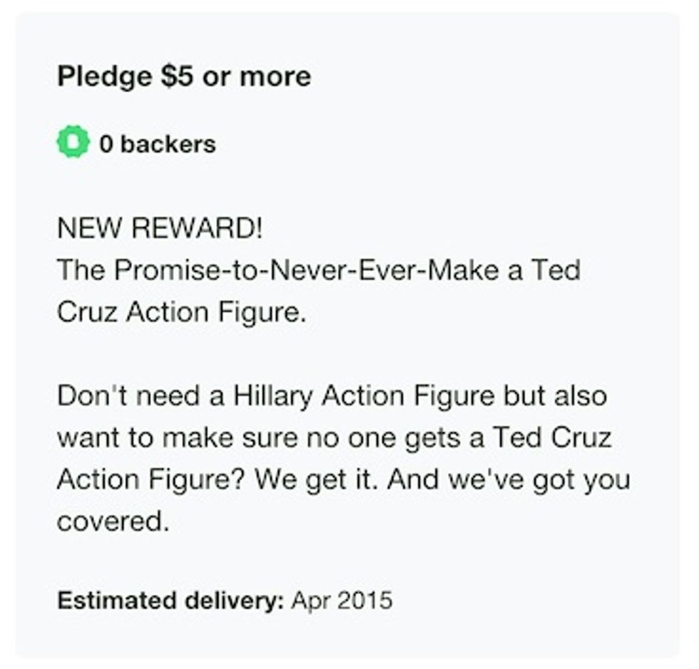 As for the Hillary Action Figure Kickstarter campaign, it met its goal early last week, and has 10 days to go, so Jason has added some bonus goals. If the campaign gets to $60,000, they'll add a version wearing a pink pantsuit. And immediately after the biggest story of last Monday's news cycle, Jason added a new pledge goal for a remarkably low price: