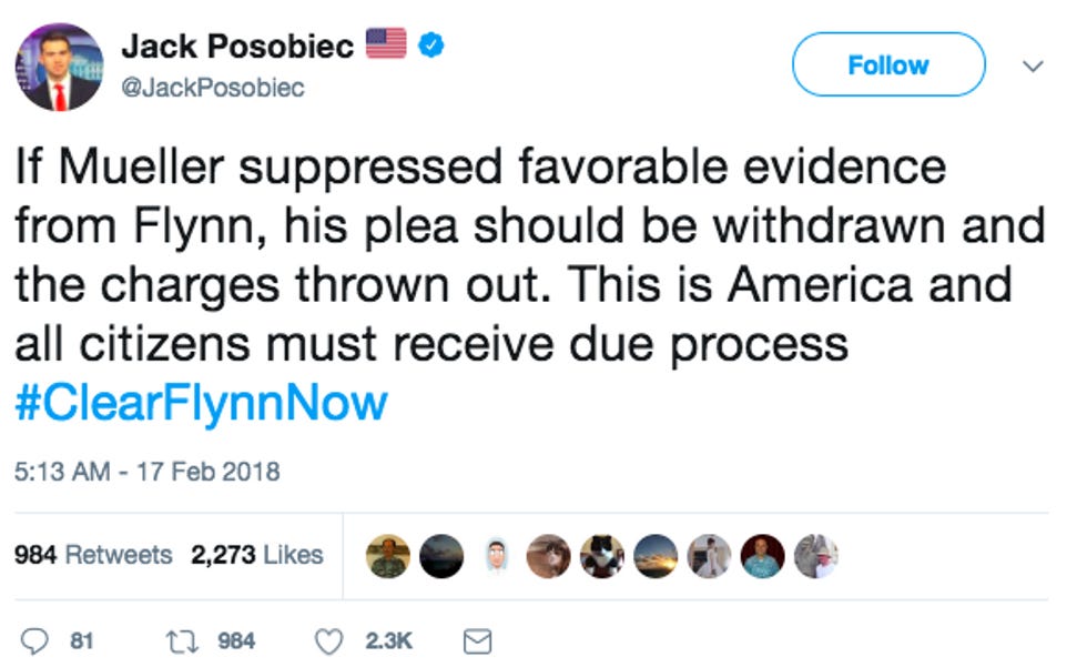 Or so we thought last week when we came upon Kilmeade's tweet. It turns out that the wingnut feverswamp is having a #ClearFlynnNow moment because they can't read good. They really believe the court is about to bust this case wide open, revealing Mike Flynn to be an innocent man wrongly framed by evil Robert Mueller and his band of goons.