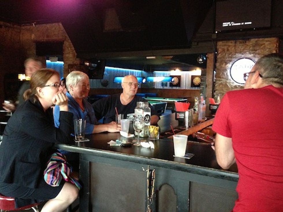 A scotch, three -- four? -- spritzers, a glass of wine, 17 beers, two shots of Jaeger, some box wine, and some Fireball later (some of that may be misremembered), Miss Lisa Wines was mortally wounded. We had no choice but to leave her to die.