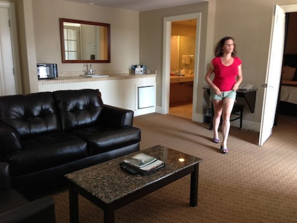 We had made it through Scottsdale and Santa Fe, through Minneapolis and Madison, through Chicago and somewhere else probably, man, it's all running together, you know? We still had Norman, and Dallas, and Austin to go. And we'd looked on AirBnB for a room to rent, but all we'd seen in Lawrence, Kansas, was one guy who wanted his guests to bring beer and stay in his kid's room, and a Frog who did his entire video en Franch, while toasting a large wine glass at the camera. Lisa and I weren't about to get date raped, buddy, Franchman or not. "Eer, ave zees glass of daterape! We toast!" "NON! YOU MAY NOT RAPE US! EEZ NOT ALLOWED! ZEE PENIS! YOU MAKE HIM GO DOWN NOW!"
