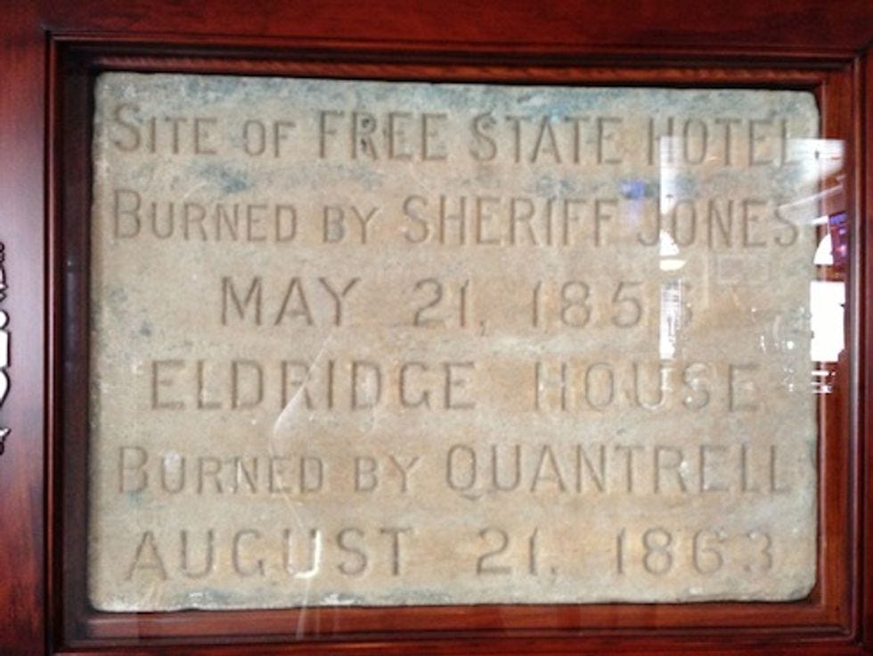 So we went to the Eldridge, a cozy little joint that was originally burned down by pro-slavery forces in the 1850s or sometime, during the Siege of Lawrence. The kid at the counter -- nice kid! -- had entirely the wrong idea about us, as he seems to have put us in some kind of presidential suite.