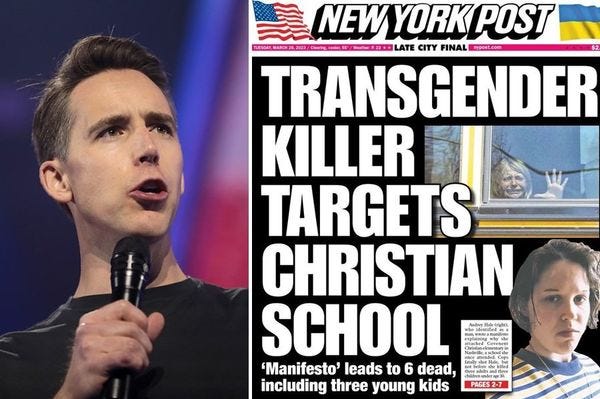 There was yet another mass shooting at school last week, and six people are dead, including three children. However, Republicans have predictably latched onto the shooter's gender identity as their latest method of making life more miserable and dangerous for trans people. Meanwhile, they resist any new gun safety measures, specifically banning assault rifles.