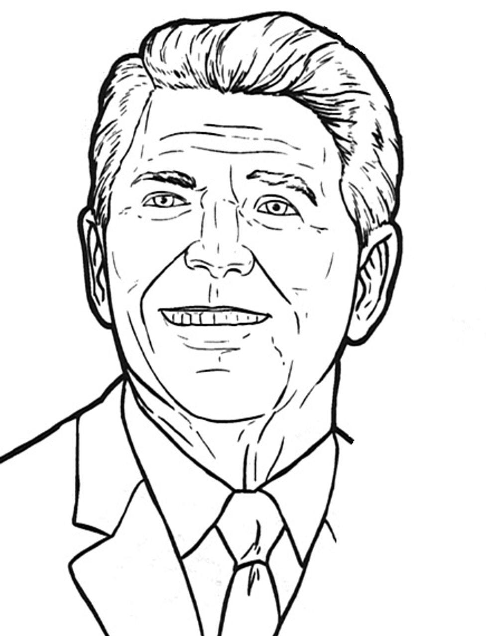 As a special puzzle for grownups, can you find the group in that last paragraph that doesn't belong? Sure! We knew you could! Again, not sure if trolling, or if the writer simply didn't give two shits. Similarly, the next page features a collection of “Historic American Leaders — George Washington, Abraham Lincoln, Thomas Edison, Ronald Reagan, Susan B. Anthony, “Founding Fathers," Frederick Douglass, and Franklin Delano Roosevelt. What the hell is Roosevelt doing in a book about Ted Cruz? Why is Thomas Edison included at all? Kid, you ask too many questions. But here, enjoy coloring this picture of Ronald Reagan with a death's-head rictus of a smile: